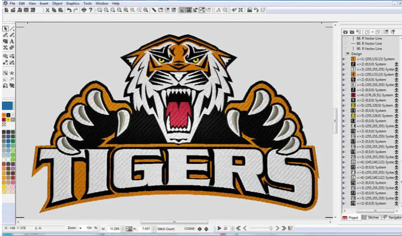 Before an embroidery machine can stitch a design onto fabric, the artwork must first be converted into a digital embroidery file. This process is called ‘digitising’ and involves mapping out the design in a specialised embroidery software. The software determines the stitch types, direction, and density required to accurately reproduce the artwork in thread. Once digitised, the design is saved onto a digital disc or file, which is then uploaded to the embroidery machine. This digital file acts as the blueprint for the machine, guiding it to stitch the design with precision. Proper digitisation is crucial, as a well-prepared file ensures clean, crisp embroidery without thread breakage or distortion.